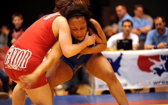 Sure did, Marcus. But she shook it off and is lifting him out of the danger zone. Now we have a series of kicks to Mama’s crotch. Ouch! There goes the baby-maker!